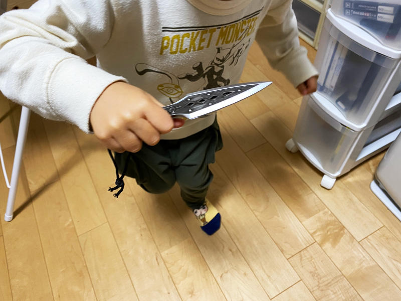 景品のレイスのクナイが今日届きました。もちろん子供の届かない所に飾っておきます。