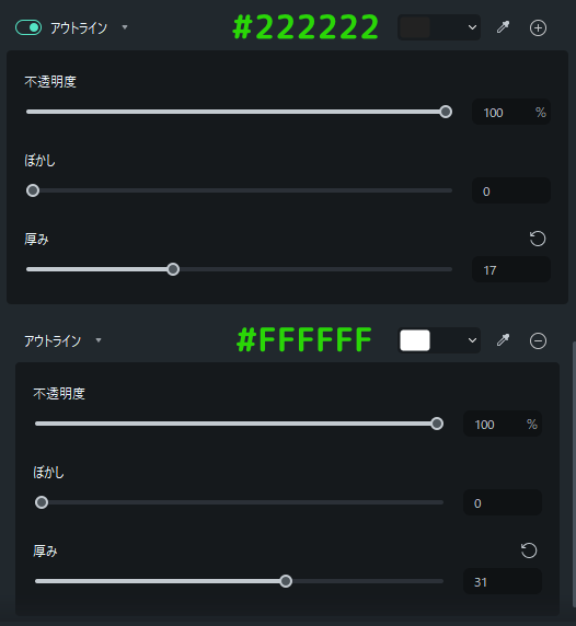 字幕(タイトル)を二重袋文字にする設定