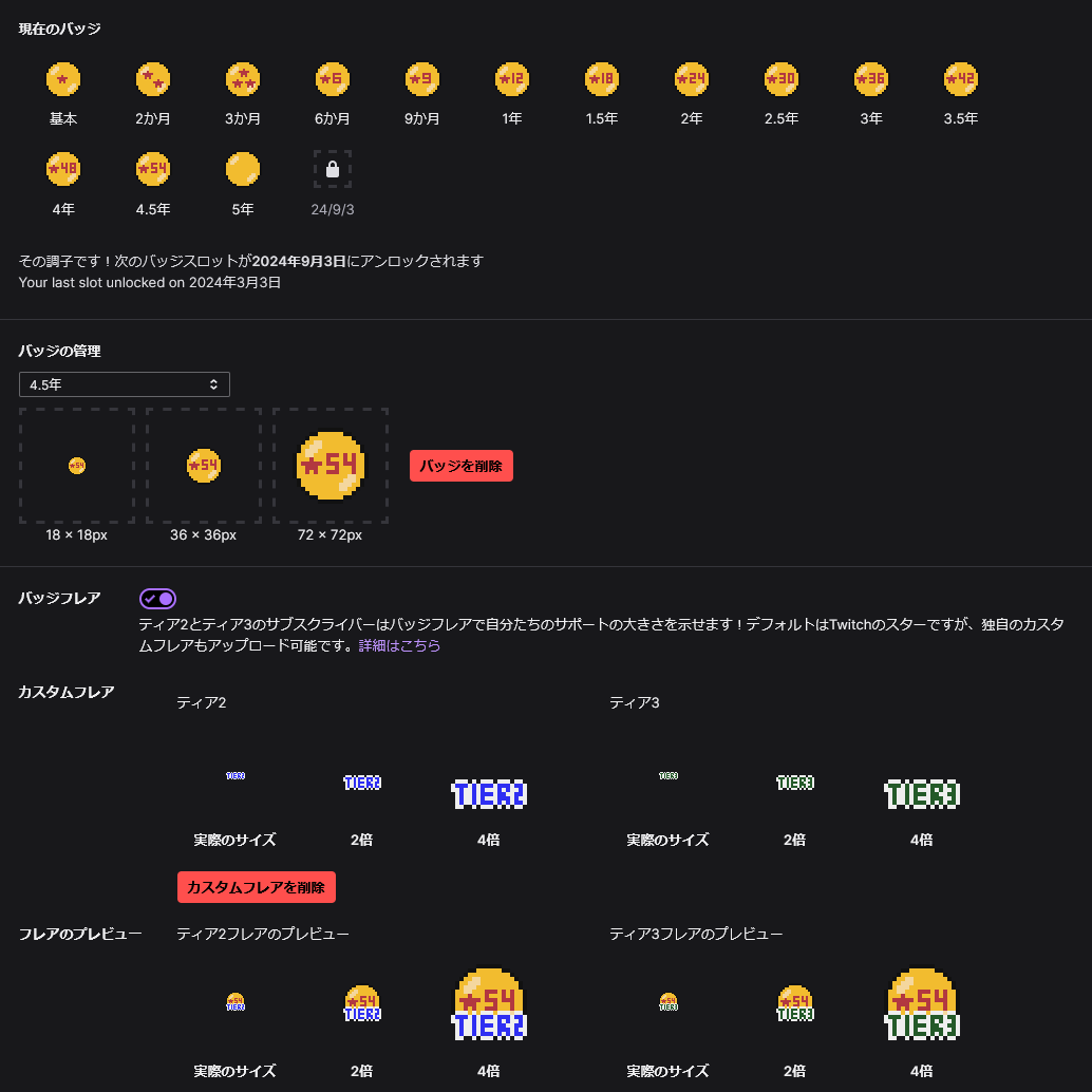 願い玉風のバッジです。ティア2・ティア3のバッジフレアにも対応しています。