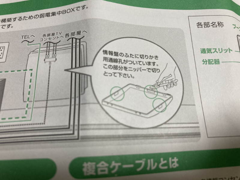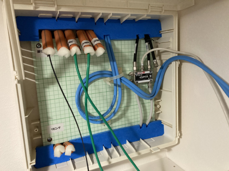 配線が綺麗に収まっていないので、フタがしめられず壁の穴の空気が入ってきてしまう。