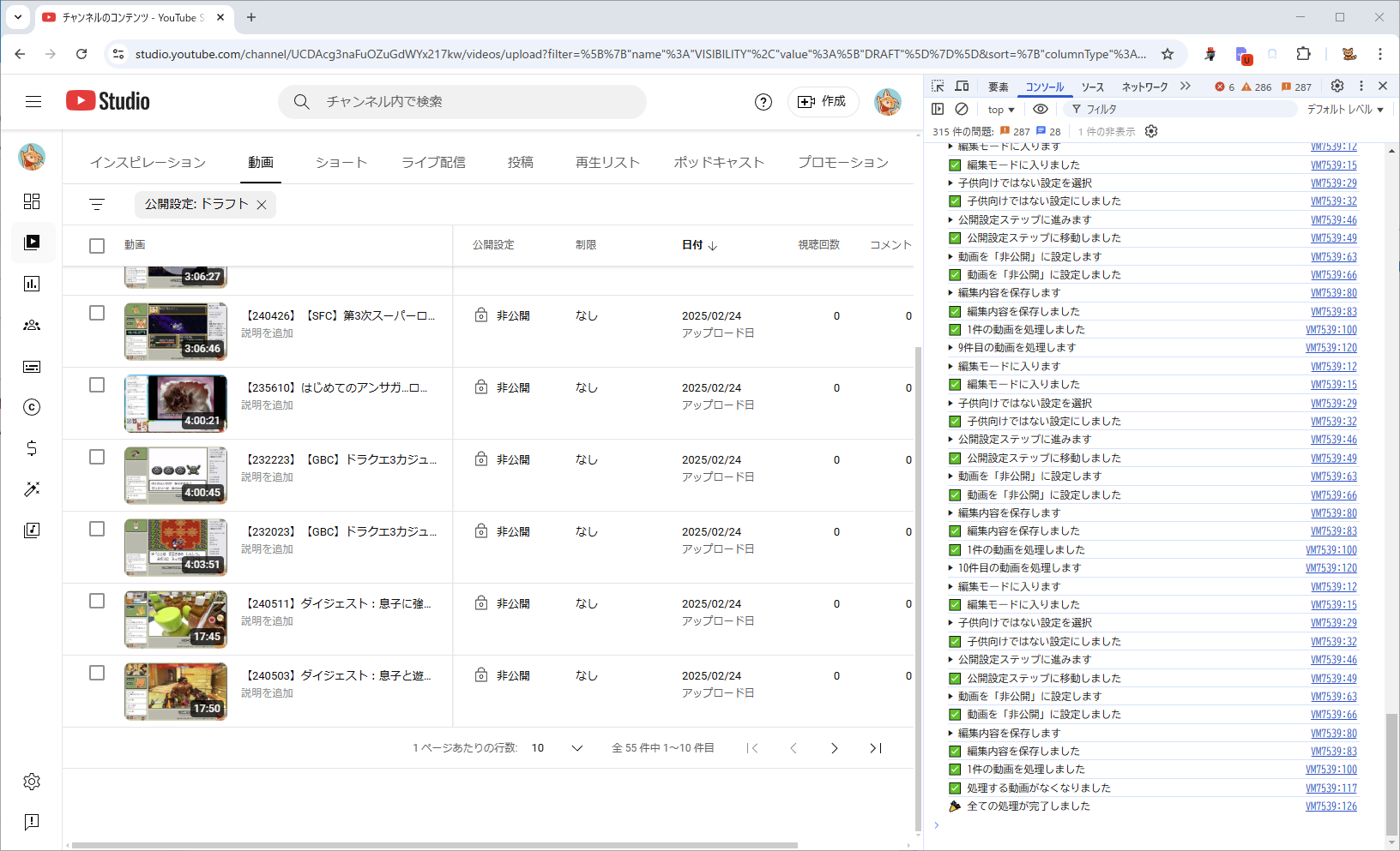 console.log(`▶ ${i + 1}件目の動画を処理します`);