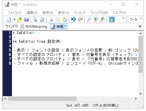 ファイル > 新規作成時 > エンコード「UTF-8」、Unicodeサイン(BOM]]を付けるのチェックは外す