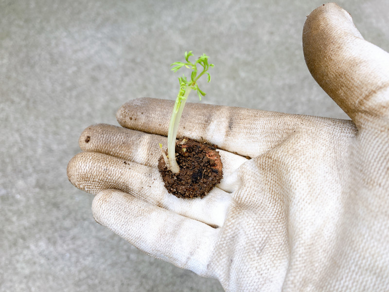 たまに生ごみとして埋めたのに発芽してしまうことがあります。これは人参。