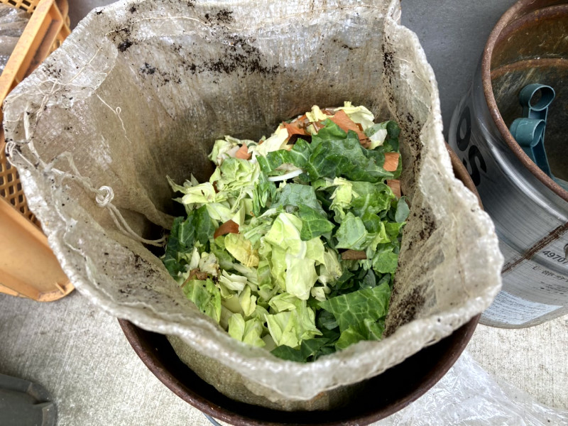 うちでは土と生ごみとカルスNC-Rを土のう袋にいれて、さらに蓋付きのペール缶で虫対策しました。それでも春ぐらいでやめておくほうが良いです。