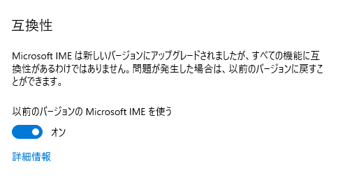 Windows10の設定 > "IME"で検索して "日本語IME設定"を開く > 全般 > 一番下の互換性で「以前のバージョンのMicrosoft IMEを使う」をオンにする。+OS再起動で直せました。