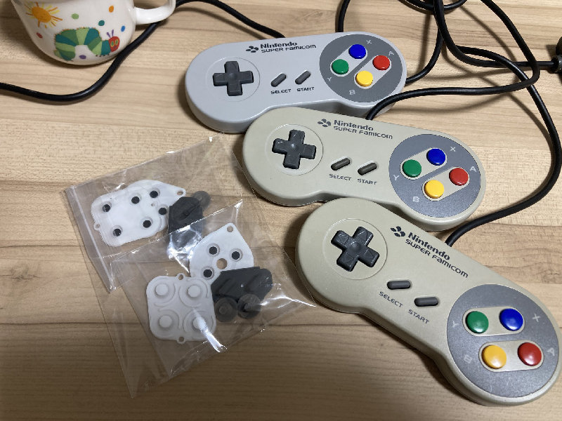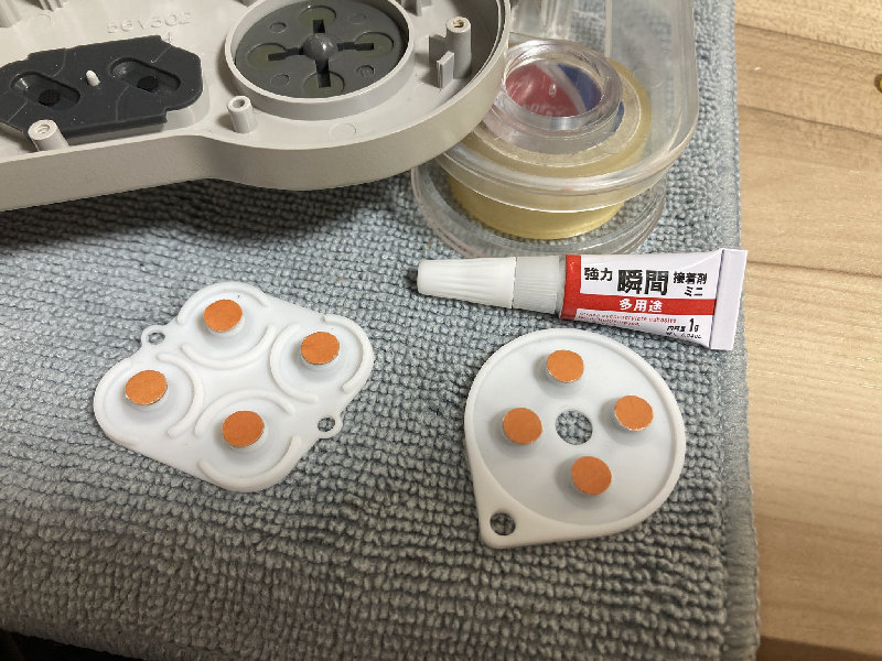 - 今回は厚紙を穴あけパンチでくり抜いたもの+瞬間接着剤をつかったが、十字キー側は僅かな高さの違いが誤入力の原因になるので調整が大変でした。