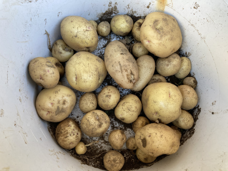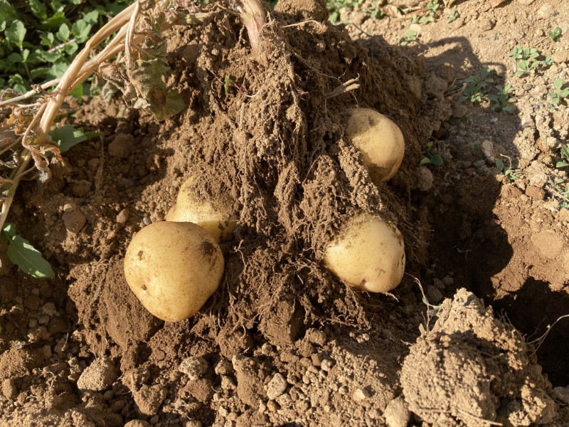 畑に生えていたじゃがいもを植え直してみた。ちゃんと育ったか不安。