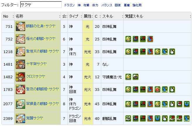 それだけでも足りないので、画像の使用数を大幅に減らすために合計数を数値で表示する準備をしました。 パズドラ非公式wikiさんとほぼ同じ構成です。
